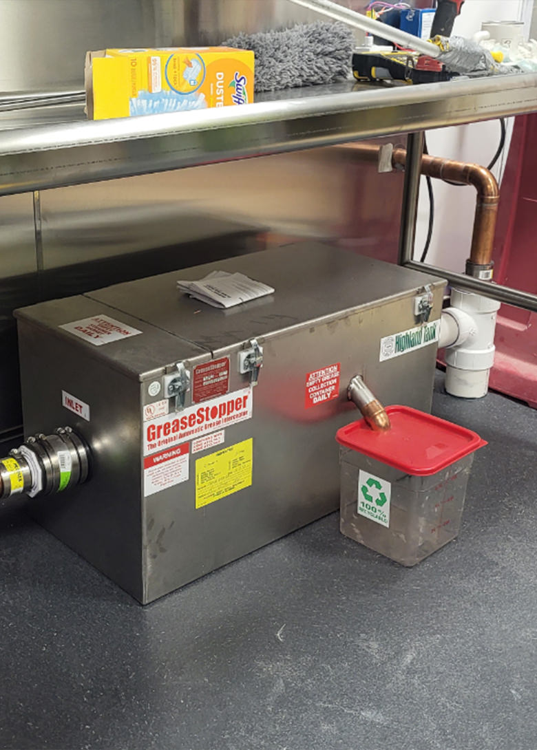 - Automatic Grease Interceptor (AGI): Captures oil and grease before drains.
